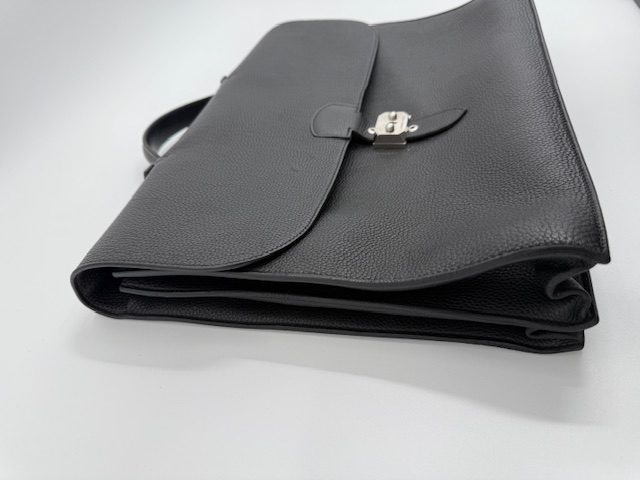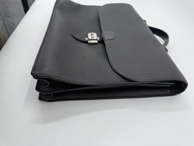 クラッシックでフォーマルなデザインが特長の書類ケースですが、素材が柔らかいトリヨンクレマンスの場合、マチや底面が膨らみ使いにくくなる傾向があります。