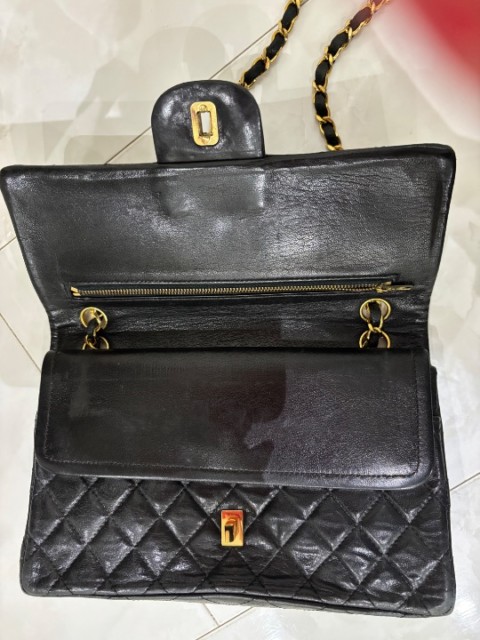 こんにちは このたびは諦めかけていましたシャネルのマトラッセの修復をありがとうございました。 お願いして本当によかったです。 このバッグは、今年1月に他界した母が約50年少し前に購入し、大切にしていたものです。 20年ほど使われずタンスに眠っていましたので…カビの臭い、傷、色が禿げたりと全体的に修復不可能かと思い諦めかけていましたが… もしやと修復をお願いしたところ見違えるほど美しく蘇り、感動しています。心より感謝申し上げます。 諦めずに修復のお願いをして本当に良かったです。 ありがとうございました。 ▽お送りいただいた画像です▽▽メンテナンス前の状態▽