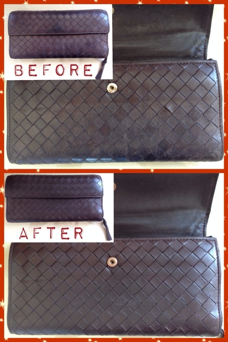 お財布の重なり合う面(内側)の色あせやシミも、おおむねメンテナンス可能です。